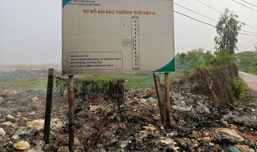| Bãi rác ngay khu vực dân cư gây ảnh hưởng đến người dân trên địa bàn khóm Bình Hòa Thượng, phường Thường Lạc, tỉnh Đồng Tháp. |