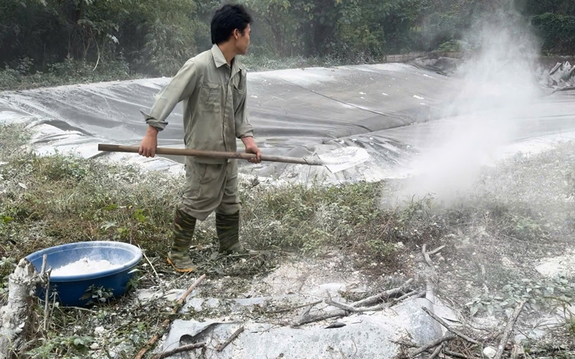 | Rắc vôi bột xung quanh khu chăn nuôi. |