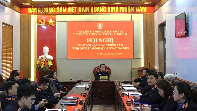 | Đồng chí Nguyễn Đức Hưởng, Viện trưởng VKSND khu vực 7 - Phú Thọ chủ trì cuộc họp triển khai tuyên truyền Nghị quyết 205 của Quốc hội. |