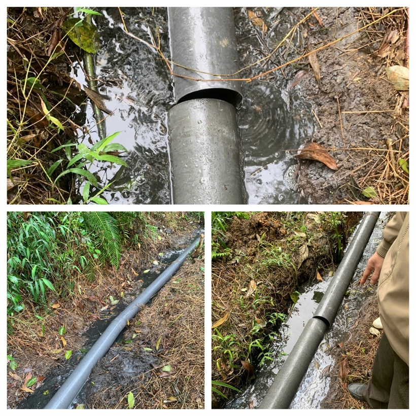 | Hình ảnh hệ thống ống nước thải chăn nuôi của hộ gia đình ông Chung. Ảnh: VKS |