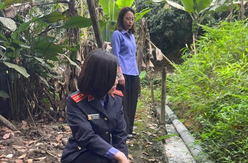 | Kiểm sát viên VKSND khu vực 5, tỉnh Phú Thọ kiểm tra trực tiếp hiện trường vụ việc. Ảnh: VKS |