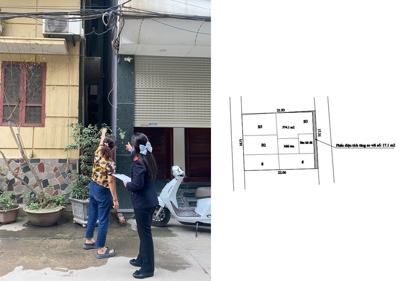 Hiện trạng sử dụng đất do bà Nguyễn Thị Tú Uyên (con dâu ông Sức, bà Yến) đang quản lý, sử dụng. Tại Công văn số 730 ngày 26/3/2026 của UBND xã Bát Tràng cho thấy: phần diện tích 17m² ngoài phạm vi Giấy chứng nhận quyền sử dụng đất có nguồn gốc là đất giao thông theo bản đồ đo vẽ năm 1993–1994, thuộc quỹ đất công do Nhà nước quản lý, hiện đang được hộ gia đình sử dụng và đã xây dựng công trình trên đất.