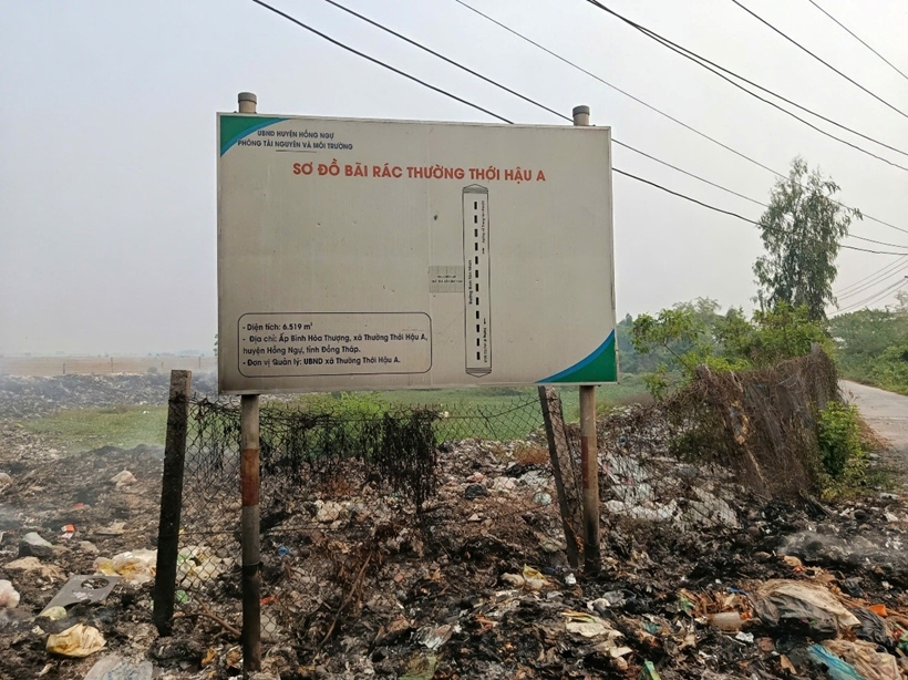 | Bãi rác ngay khu vực dân cư sinh sống trên địa bàn khóm Bình Hòa Thượng, phường Thường Lạc, tỉnh Đồng Tháp |