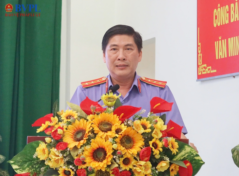 | Đồng chí Hồ Văn Hòa, Viện trưởng VKSND Khu vực 3 TP Hồ Chí Minh phát biểu tại buổi lễ. |
