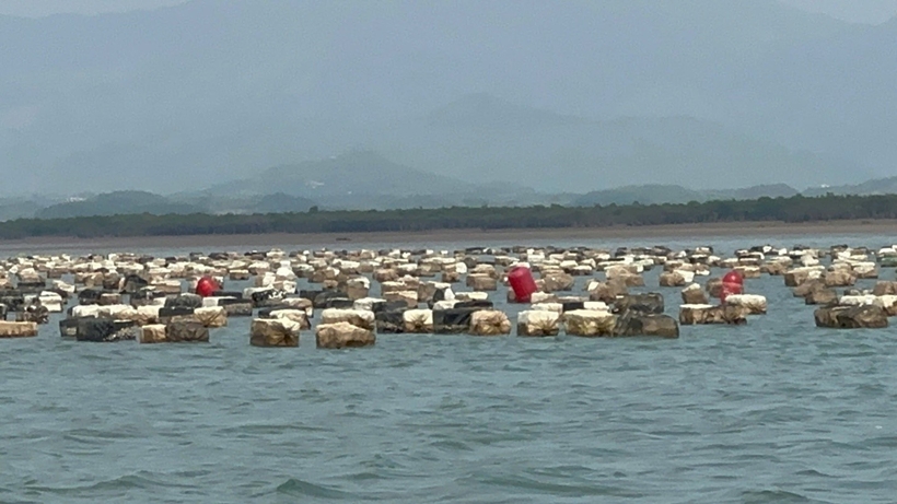 | Hình ảnh các phao xốp không đạt tiêu chuẩn sử dụng trong nuôi trồng thủy sản tại vùng biển thuộc xã Đông Ngũ, tỉnh Quảng Ninh. |