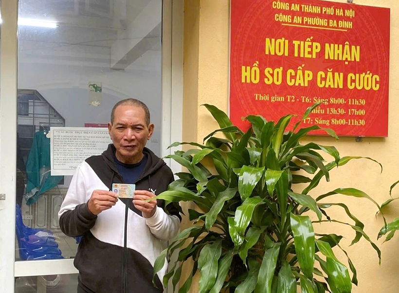 | Ông Nguyễn Văn Huấn đến trụ sở Công an phường Ba Đình nhận thẻ căn cước. |