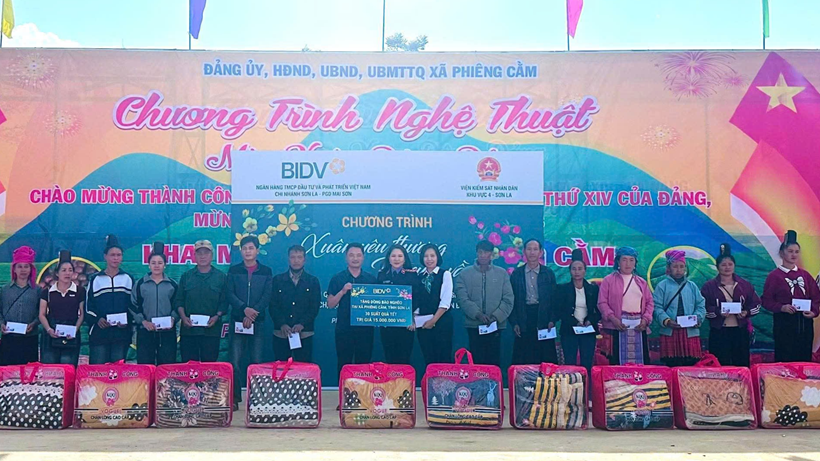 Trong không khí vui tươi chuẩn bị chào đón Xuân Bính Ngọ năm 2026, VKSND khu vực 4, tỉnh Sơn La chủ trì phối hợp với Đồn Biên phòng Chiềng On và Ngân hàng BIDV khu vực Mai Sơn tổ chức chương trình “Xuân Biên phòng - Ấm lòng dân bản”, “Xuân yêu thương - Tết sum vầy”; kết hợp tuyên truyền Nghị quyết 205/2025/QH15 về tố tụng công tích và tặng quà các hộ nghèo tại tặng quà Tết cho 117 hộ nghèo tại địa bàn 2 xã Phiêng Cằm, Yên Sơn, tỉnh Sơn La.
