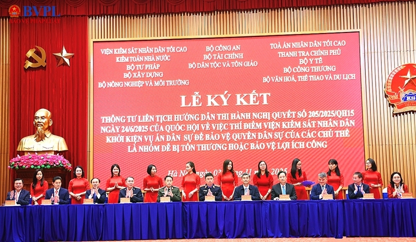 VKSND tối cao, TAND tối cao, Kiểm toán Nhà nước, Thanh tra Chính phủ, Bộ Công an, Bộ Tư pháp, Bộ Tài chính, Bộ Công thương, Bộ Xây dựng, Bộ Y tế, Bộ Nông nghiệp và Môi trường, Bộ Văn hóa, Thể thao và Du lịch, Bộ Dân tộc và Tôn giáo vừa ban hành Thông tư liên tịch số 09/2025/TTLT-VKSNDTC-TANDTC-KTNN-TTCP-BCA-BTP-BTC-BCT-BXD-BYT-BNNMT-BVHTTDL-BDTTG hướng dẫn thi hành Nghị quyết số 205/2025/QH15 ngày 24/6/2025 của Quốc hội về việc thí điểm VKSND khởi kiện vụ án dân sự để bảo vệ quyền dân sự của các chủ thể là nhóm dễ bị tổn thương hoặc bảo vệ lợi ích công (Thông tư liên tịch số 09).