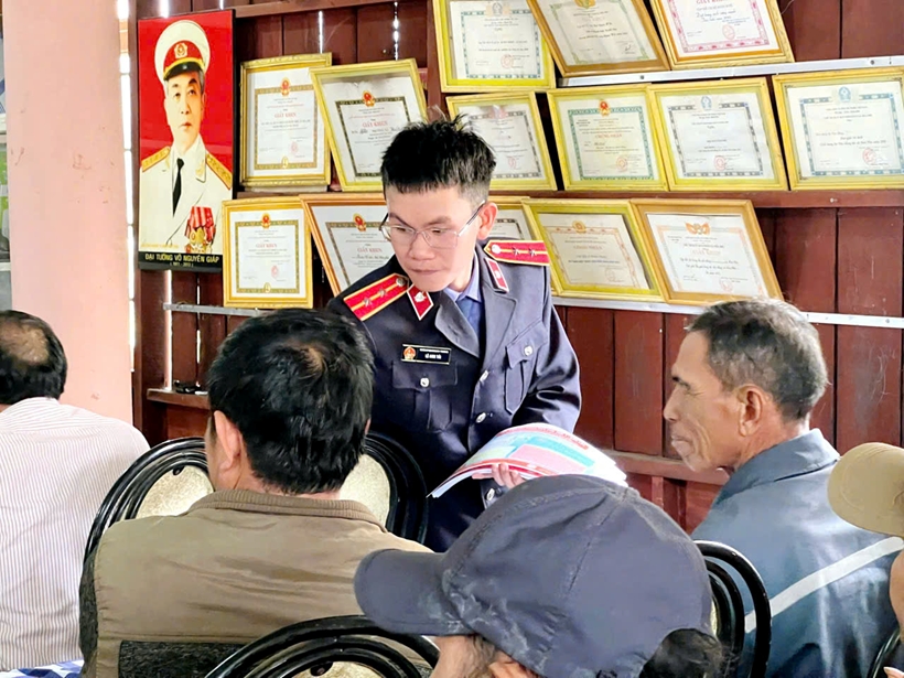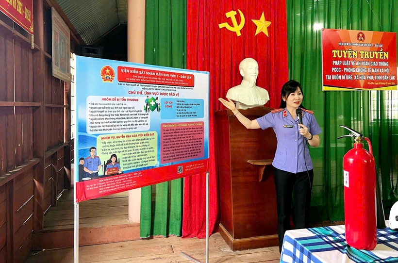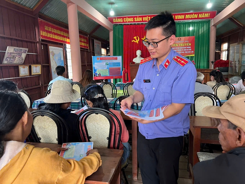 | Kiểm sát viên VKSND khu vực 1 (Đắk Lắk) truyên truyền việc triển khai Nghị quyết 205/2025/QH15. |