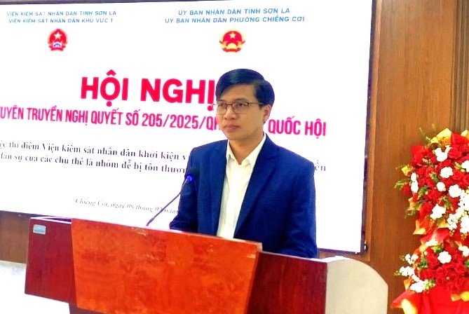 Phát biểu tại Hội nghị, đồng chí Nguyễn Văn Thản - Phó Bí thư Đảng ủy, Chủ tịch UBND phường Chiềng Cơi cảm ơn sự quan tâm, phối hợp của VKSND khu vực 1 trong việc lựa chọn địa bàn phường để tổ chức hoạt động tuyên truyền pháp luật thiết thực, ý nghĩa.