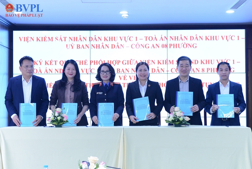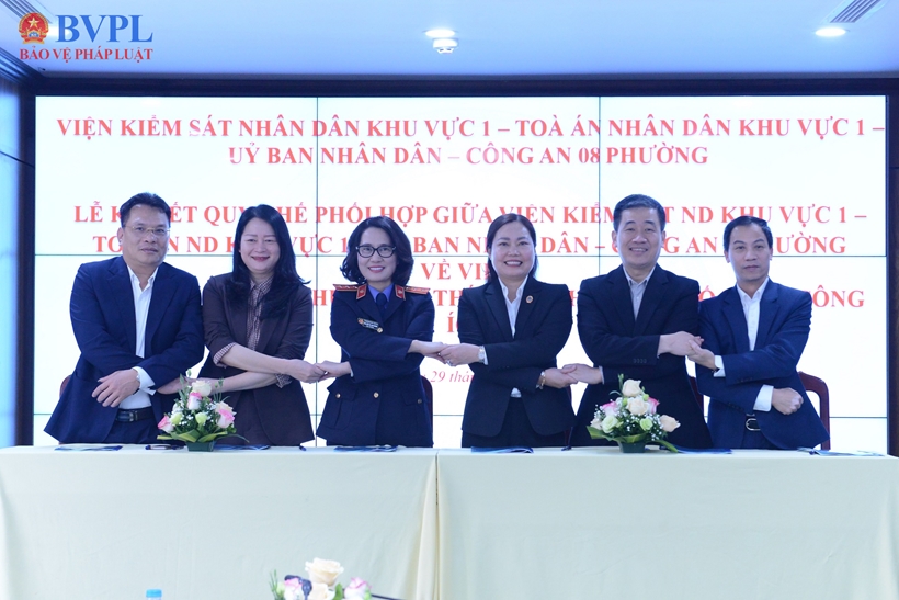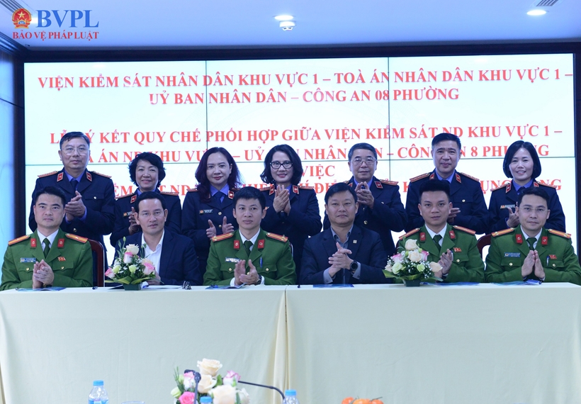 Tại Hội nghị, các đại biểu chứng kiến lễ Ký kết Quy chế phối hợp giữa VKSND Khu vực 1 với TAND Khu vực 1, UBND và Công an 8 phường trên địa bàn.