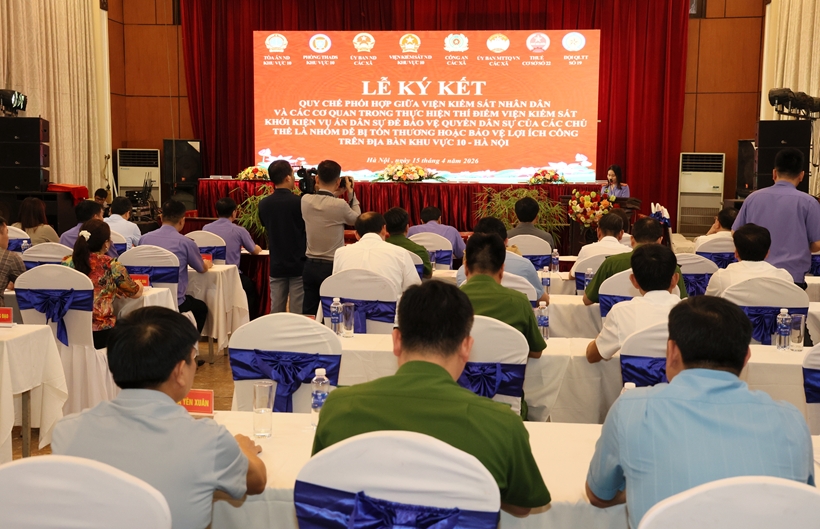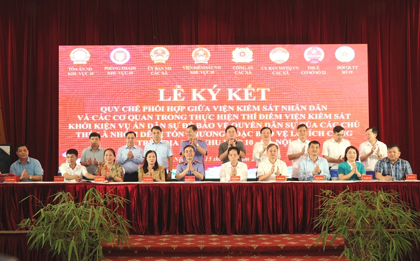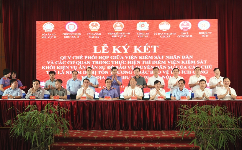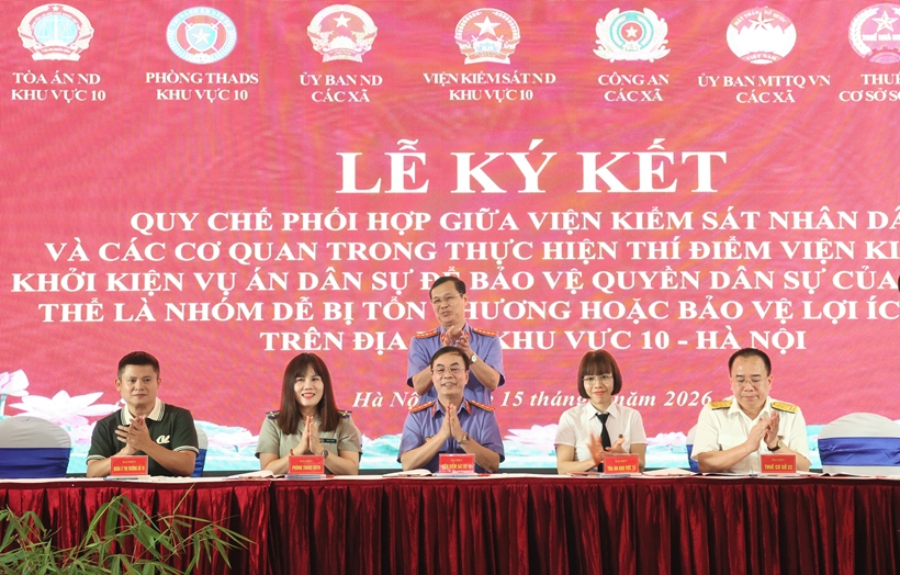 VKSND khu vực 10 - Hà Nội vừa phối hợp với các cơ quan, đơn vị trên địa bàn tổ chức Lễ ký kết Quy chế phối hợp triển khai thực hiện Nghị quyết số 205/2025/QH15 của Quốc hội về thí điểm VKSND khởi kiện vụ án dân sự nhằm bảo vệ quyền dân sự của các chủ thể là nhóm dễ bị tổn thương hoặc bảo vệ lợi ích công.