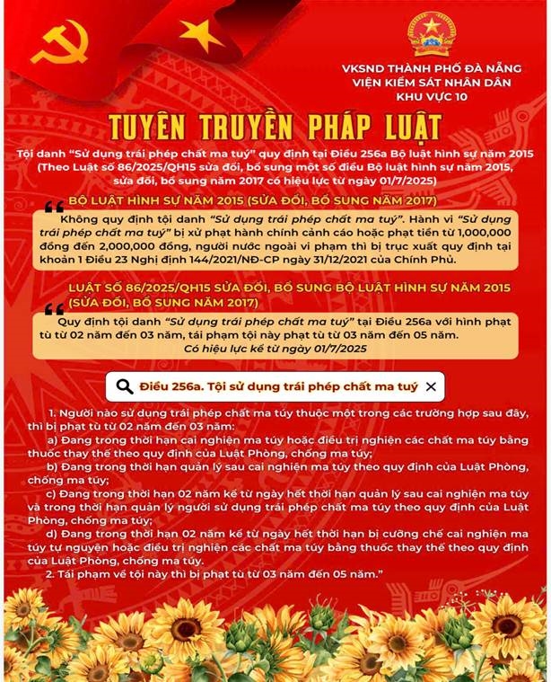 Thứ hai, tuyên truyền quy định tại Điều 256a Bộ luật Hình sự về tội sử dụng trái phép chất ma túy, nhằm cảnh báo, phòng ngừa tội phạm và các hành vi vi phạm pháp luật liên quan đến ma túy trong tình hình hiện nay. Thông qua các bảng pano, áp phích, người dân được thông tin về hành vi sử dụng trái phép chất ma túy đã bị hình sự hóa, các hậu quả pháp lý nghiêm trọng có thể phải đối mặt, qua đó góp phần nâng cao ý thức chấp hành pháp luật, chủ động phòng, chống tệ nạn ma túy trong cộng đồng.