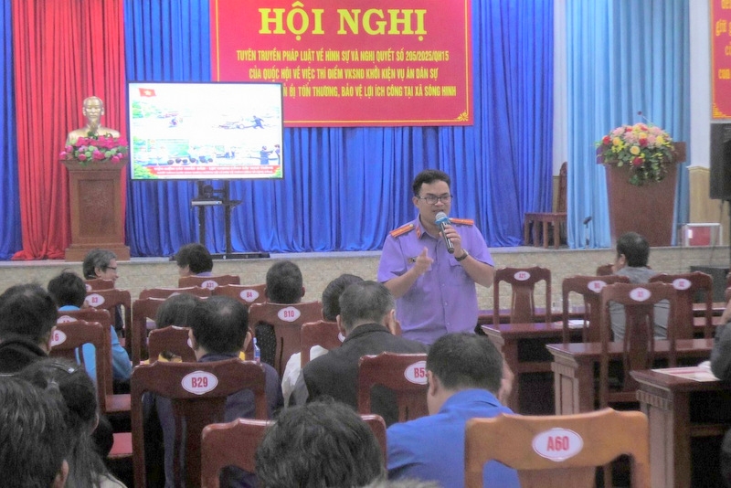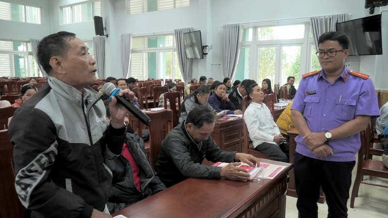 Tại hội nghị, VKSND khu vực 15 trình chiếu video do đơn vị tự xây dựng về Nghị quyết 205, phát phiếu thu thập thông tin và hỗ trợ người dân điền phiếu; đồng thời cung cấp poster tuyên truyền cho bí thư chi bộ, trưởng thôn, buôn để niêm yết tại nhà văn hóa, giúp người dân dễ tiếp cận và tra cứu.