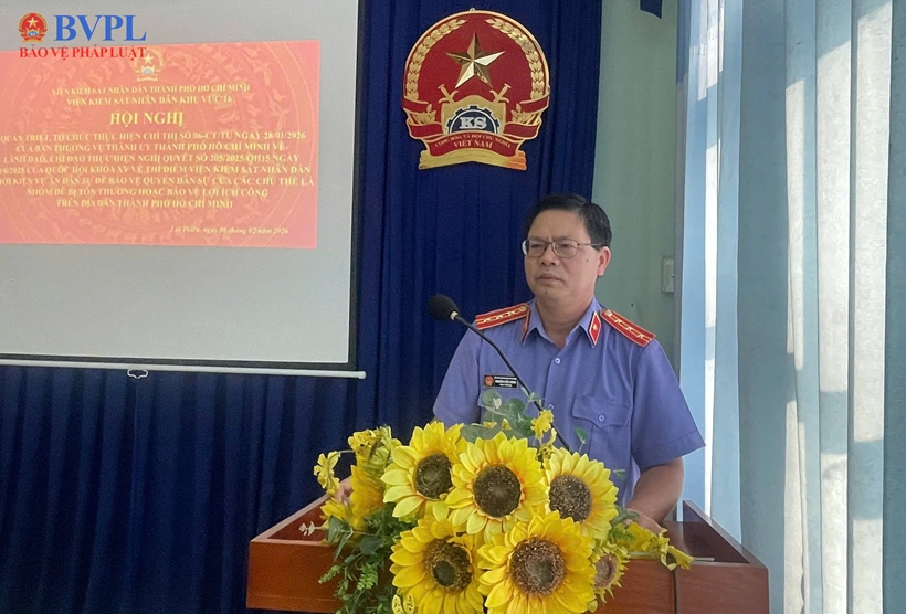 Theo đó, thực hiện Chỉ thị số 06-CT/TU ngày 28/1/2026 của Ban Thường vụ Thành ủy TP Hồ Chí Minh và Kế hoạch số 16-KH/ĐU ngày 29/1/2026 của Đảng ủy VKSND TP Hồ Chí Minh, Chi ủy chi bộ VKSND Khu vực 16 đã tổ chức Hội nghị quán triệt, triển khai thực hiện Nghị quyết số 205/2025/QH15 của Quốc hội khóa XV về thí điểm Viện kiểm sát nhân dân khởi kiện vụ án dân sự nhằm bảo vệ quyền dân sự của các chủ thể là nhóm dễ bị tổn thương hoặc bảo vệ lợi ích công trên địa bàn TP Hồ Chí Minh.
