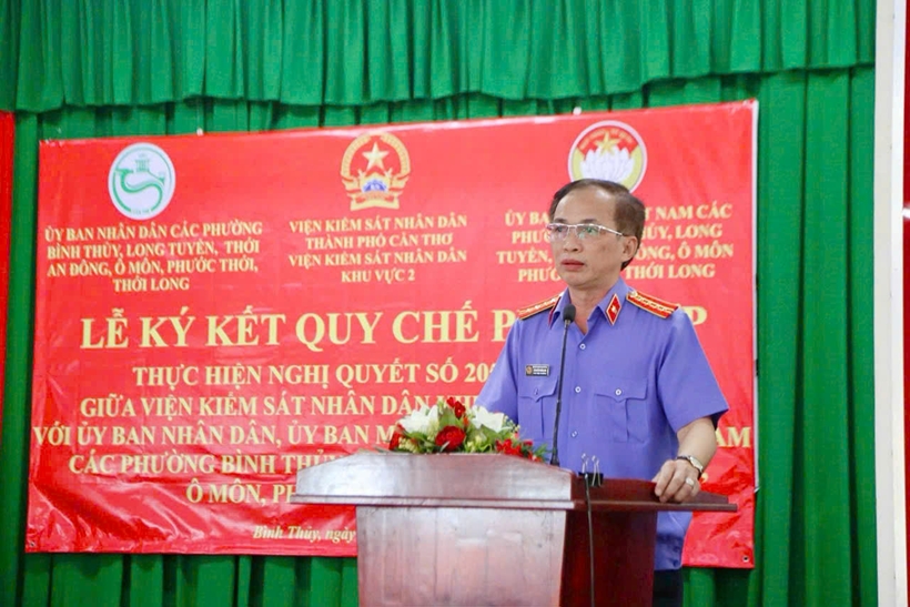 Phát biểu chỉ đạo tại buổi lễ, đồng chí Lê Nguyễn Trường Sơn ghi nhận và đánh giá cao tinh thần chủ động, trách nhiệm của VKSND Khu vực 2, Cần Thơ cùng các cơ quan, đơn vị địa phương trong việc triển khai một nhiệm vụ mới, khó và chưa có tiền lệ. Đồng chí đề nghị, sau khi ký kết, các đơn vị cần tiếp tục tăng cường phối hợp, trao đổi thông tin kịp thời, chủ động tháo gỡ khó khăn, vướng mắc trong quá trình thực hiện, qua đó góp phần bảo vệ hiệu quả quyền và lợi ích hợp pháp của Nhân dân, nhất là các đối tượng yếu thế trong xã hội.