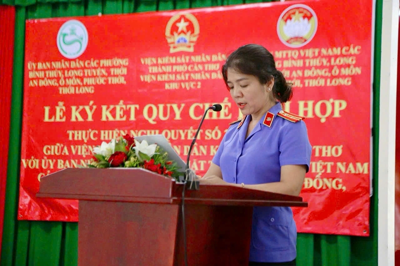 Tại buổi lễ, đồng chí Trần Thị Xuân Đào, Phó Viện trưởng VKSND Khu vực 2 Cần Thơ đã trình bày báo cáo quá trình xây dựng Quy chế. Theo đó, Quy chế được xây dựng trên cơ sở nghiên cứu kỹ lưỡng các quy định của Nghị quyết và các văn bản liên quan, đồng thời tiếp thu nhiều ý kiến đóng góp trách nhiệm, tâm huyết từ các cơ quan phối hợp. Nội dung Quy chế bảo đảm tính chặt chẽ, khả thi và phù hợp với điều kiện thực tiễn tại địa phương.