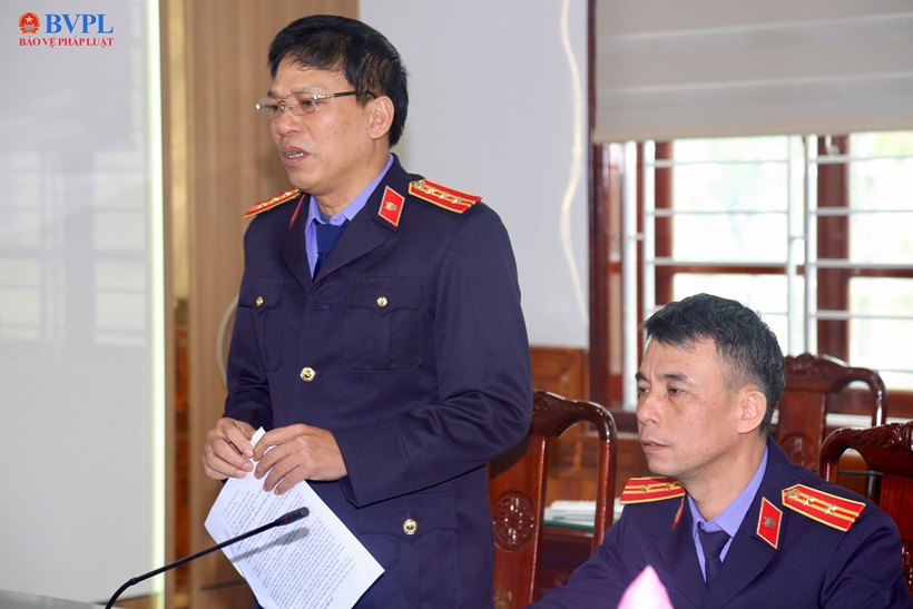 | Đồng chí Nguyễn Trọng Hùng, Phó Viện trưởng VKSND khu vực 2 chia sẻ tại buổi làm việc. |