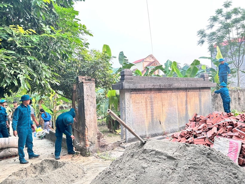 Thông tin từ phía địa phương, thực hiện kế hoạch đã đề ra, ngày 08/4/2026, xã đã huy động cán bộ, chiến sĩ Công an xã, Ban CHQS xã, lực lượng Dân quân; huy động đoàn viên, hội viên các tổ chức Chính trị - Xã hội tham gia cải tạo, chỉnh trang khuôn viên, chỉnh sửa mặt bằng xung quanh khu vực di tích; tháo dỡ tường rào, công trình không liên quan và chặt, phát quang cây xanh, tổng dọn vệ sinh, trồng hoa, cây xanh xung quanh khu vực di tích, tạo không gian sạch sẽ, thoáng mát. Đồng thời bố trí lối đi, bồn hoa phù hợp với cảnh quan di tích; tu sửa một số hạng mục phụ trợ, sửa chữa, chỉnh trang hàng rào bảo vệ 2 tấm bia; kiểm tra, vệ sinh bề mặt bia, đảm bảo sạch sẽ, trang nghiêm. Đồng thời xã tăng cường tuyên truyền về ý nghĩa lịch sử của di tích; vận động nhân dân nâng cao ý thức bảo vệ di tích.