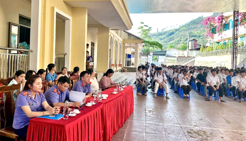 Tham dự buổi tuyên truyền có Lãnh đạo, Kiểm sát viên, chuyên viên VKSND khu vực 3 và hơn 400 học sinh, cán bộ, giáo viên Trường THPT Sông Mã.