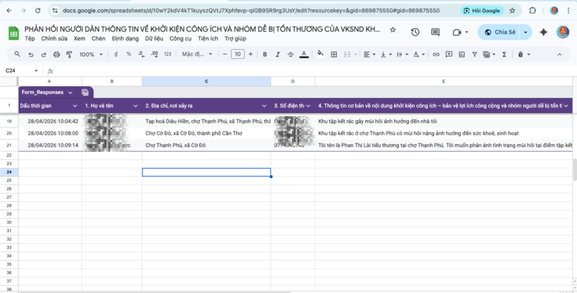 | Dữ liệu trích xuất từ mã QR - nơi tiếp nhận mọi thông tin về khởi kiện công ích – bảo vệ lợi ích công cộng và đặc biệt là bảo vệ nhóm người dễ bị tổn thương trên địa bàn khu vực 4 - Cần Thơ |