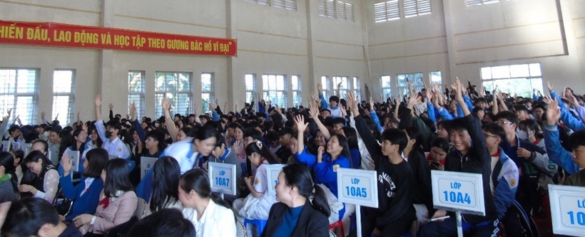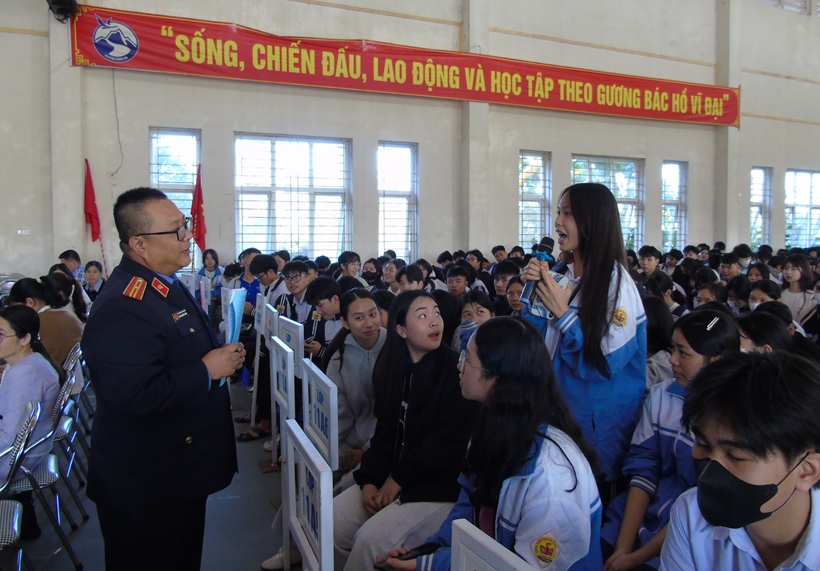 | Phần giao lưu tại buổi tuyên truyền được các học sinh, đoàn viên thanh niên hưởng ứng sôi nổi. |