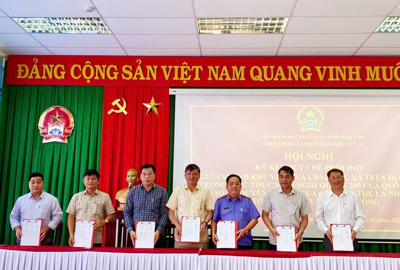 Theo đó, VKSND khu vực 5 đã tiến hành ký kết quy chế phối hợp với UBND các xã: Dray Bhăng, Krông Ana, Dur Kmăl, Ea Na, Ea Ktur và Ea Ning trong việc rà soát, tổng hợp số liệu, đánh giá thực trạng thực hiện Nghị quyết số 205/2025/QH15 ngày 24/6/2025 của Quốc hội.