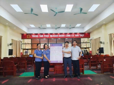 | Tuyên truyền, dán áp phích, banner tại Trung tâm hành chính công các xã. |