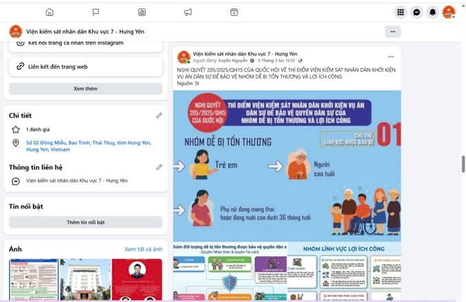 Bên cạnh hình thức tuyên truyền miệng, VKSND khu vực 7 còn chú trọng đăng những bài tuyên truyền ngắn gọn, hiện thức hóa bằng sơ đồ tư duy, tập trung vào nội dung cốt lõi của Nghị quyết số 205/2025/QH15, với hình thức trình bày ngắn gọn, dễ hiểu, đăng tải trực tiếp qua Fanpage: VKSND khu vực 7, tỉnh Hưng Yên để người dân có thể tiếp cận nhanh qua môi trường mạng xã hội, nâng cao hiệu quả tiếp nhận thông tin pháp lý, kịp thời những phản ánh từ nhân dân qua môi trường số.