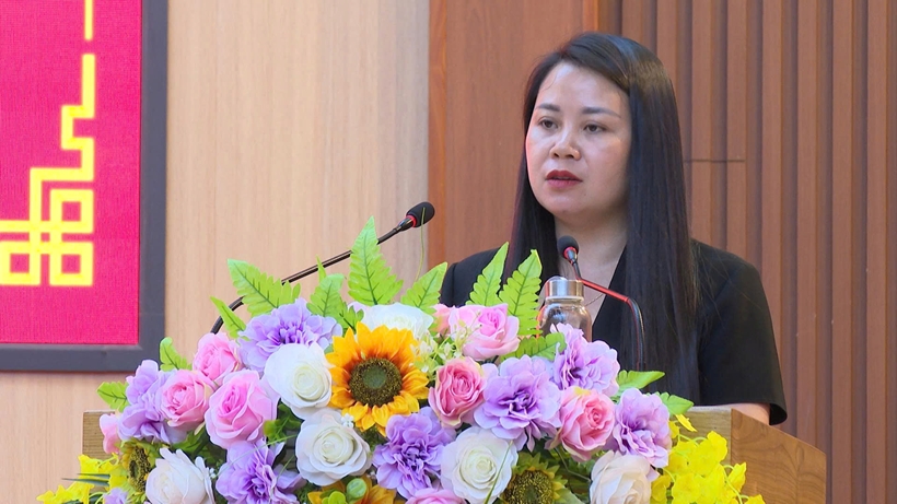 | Đồng chí Đào Thị Hồng Dung, Phó Bí thư thường trực Đảng ủy xã Thanh Sơn phát biểu tại Hội nghị. |