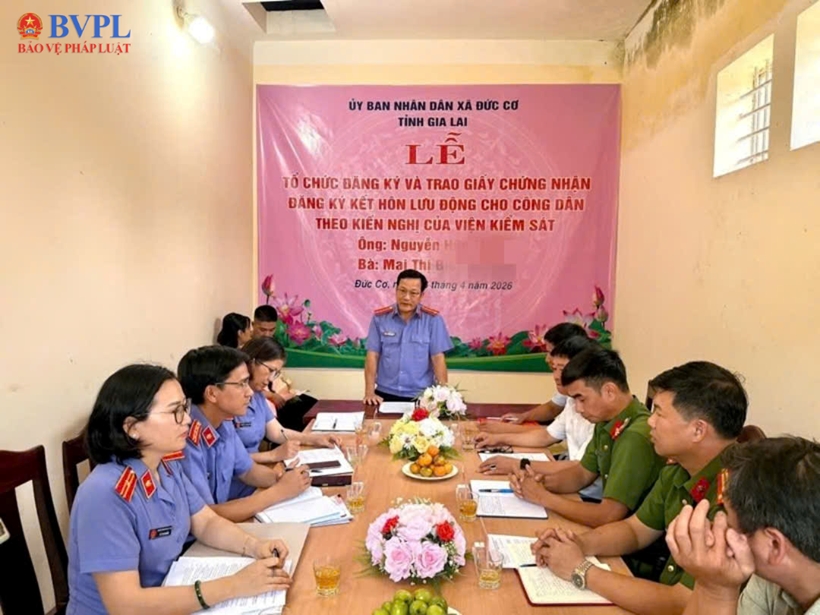 VKSND khu vực 8 (tỉnh Gia Lai) đã phối hợp với UBND xã Đức Cơ và Phân trại tạm giam Ia Grai (Cơ sở giam giữ số 2 – Trại tạm giam số 1 Công an tỉnh Gia Lai) tổ chức kiểm sát việc đăng ký kết hôn lưu động cho công dân. Qua đó, góp phần bảo đảm quyền con người, quyền công dân theo quy định của pháp luật, đặc biệt đối với nhóm đối tượng dễ bị tổn thương theo Nghị quyết số 205/2025/QH15 của Quốc hội.