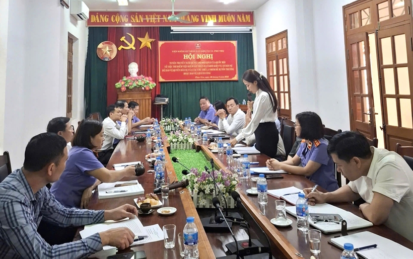 Thực hiện kế hoạch số 01/KH-VKS của VKSND tỉnh Phú Thọ về việc triển khai thực hiện Nghị quyết số 205/2025/QH15 của Quốc hội, VKSND khu vực 8 đã tổ chức Hội nghị tuyên truyền Nghị quyết số 205 đến các thành phần là đại diện lãnh đạo UBND, Đảng ủy các xã Xuân Lãng, Bình Xuyên, Bình Nguyên, Bình Tuyền; các phường Xuân Hòa, Phúc Yên.