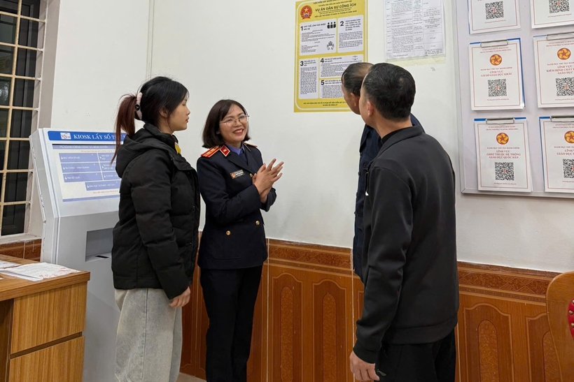 | Đồng chí Nguyễn Thị Ngọc Bích, Phó Viện trưởng VKSND khu vực 8 giới thiệu, giải thích với người dân về Nghị quyết 205. |
