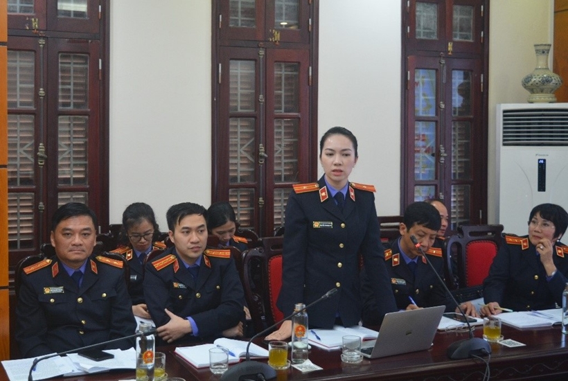 | Kiểm sát viên VKSND khu vực 1 phát biểu tại buổi làm việc. |
