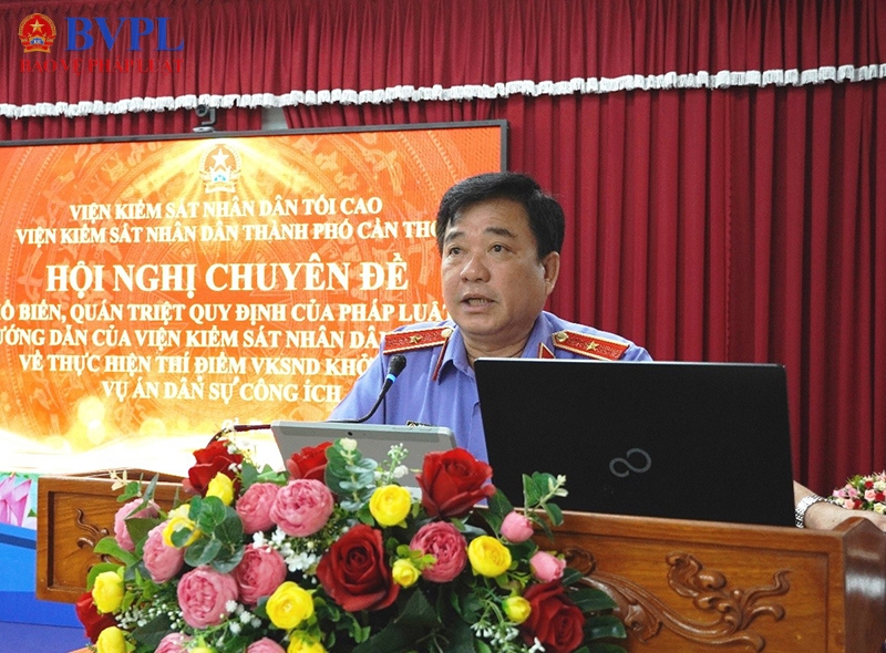 | Đồng chí Nguyễn Thanh Liêm - Viện trưởng VKSND TP Cần Thơ tại Hội nghị chuyên đề phổ biến, quán triệt các quy định của pháp luật và hướng dẫn của VKSND tối cao về thực hiện thí điểm VKSND khởi kiện vụ án dân sự công ích ngày 29/1/2026. |