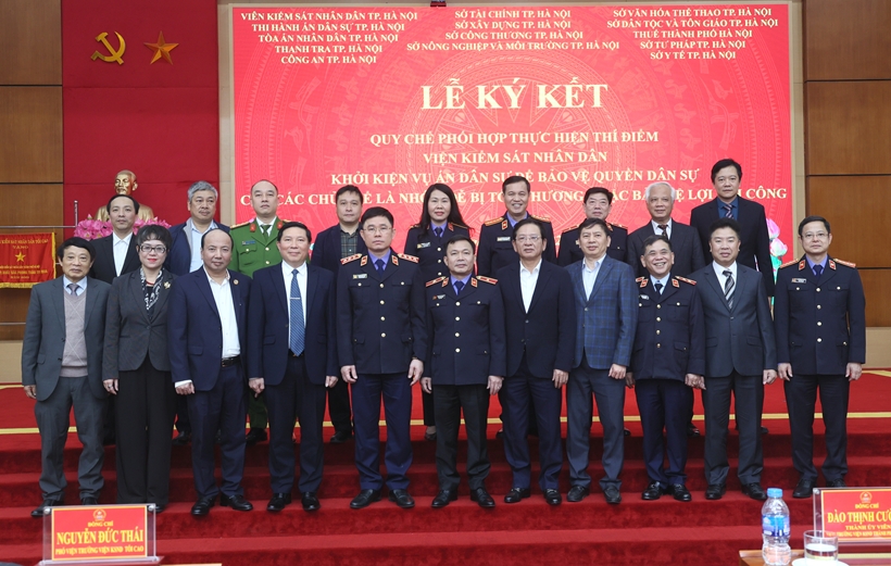 Nhằm thực hiện hiệu quả Nghị quyết số 205 của Quốc hội về việc thí điểm Viện kiểm sát nhân dân khởi kiện vụ án dân sự công ích để bảo vệ quyền dân sự của các chủ thể thuộc nhóm dễ bị tổn thương hoặc bảo vệ lợi ích công, được sự đồng ý của Lãnh đạo VKSND tối cao và Thành ủy Hà Nội, vừa qua, VKSND TP Hà Nội đã phối hợp với 17 cơ quan sở, ban, ngành và tổ chức hội của Thủ đô tổ chức Lễ ký Quy chế phối hợp thực hiện Nghị quyết 205 của Quốc hội.