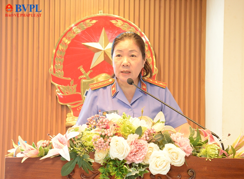 | Đồng chí Huỳnh Thị Ngọc Hoa - Phó Viện trưởng VKSND TP Hồ Chí Minh phát biểu kết luận tại hội nghị. |