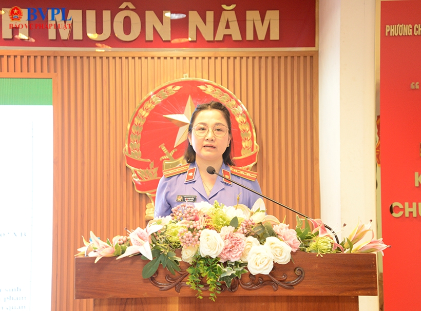 | Đồng chí Hà Thị Thúy Hằng - Trưởng Phòng 9 VKSND thành phố thông tin về các dạng vi phạm điển hình. |