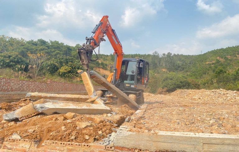 | UBND phường Vàng Danh tổ chức cưỡng chế, tiến hành phá dỡ công trình xây dựng lấn chiếm. |